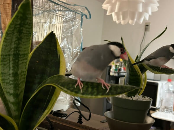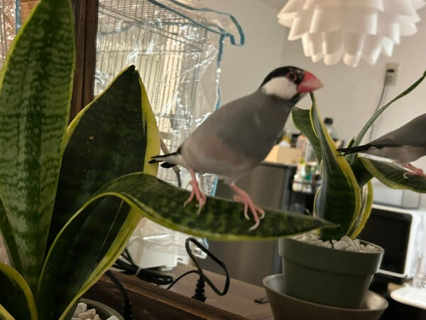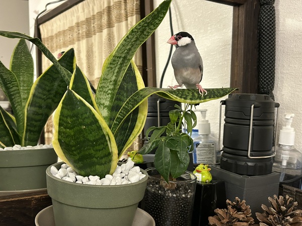サンスベリアの葉っぱにとまって、